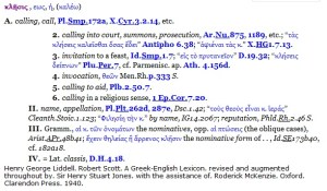 So how does BDAG come to have entry number 2 “position that one holds, position, condition?” Bartchy deconstructs the examples used by the BDAG and demonstrates that κλῆσις was not used with the sense of occupation in these cases. It is instructive to find that the French Lexicon, Magnien-LaCroix did not have the added meaning supplied by the BDAG. Instead, it has only “1. appel vers soi, invitation, convocation, citation, assignation en justice, 2 invocation des dieux, appel au secours, 3 appellation, dénomination.”