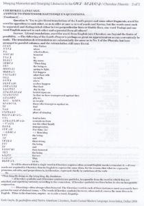 Differences in meaning are most striking in the multiple versions of “The Lord’s Prayer.” The material is clearly in two separate languages. What is unlike the bilingual content on the front page of the newspaper, however, is that there is no side-by-side visual comparisons to make. Rather, English frames the piece; there are general English language headers at the top of the piece and above the Cherokee passages, with general English-only commentary at the bottom of the text.