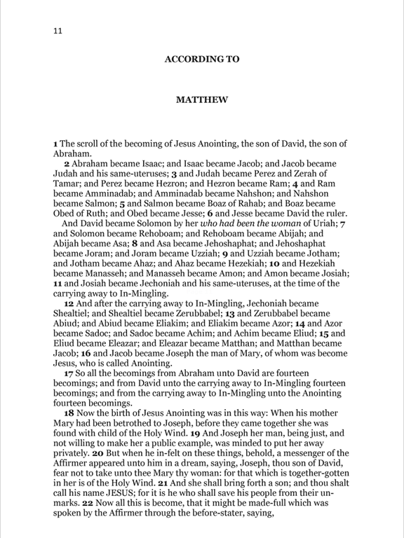 The purpose of the ENT is clear: to provide insight into the text of the New Testament via literal etymology. This begins with THEOS translated as Placer. The verbal forms of this word are also rendered as "placing". Thus, in Galatians 2:21, one can see Paul’s use of both the verb and noun. "I do not un-place the grace of Placer". Through etymological translation, one can see the interesting connection between verb and noun in Paul’s claim. He did not un-god God! And, if he were to remove grace from his teaching, that’s what he would have been doing!