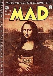 So, using Bellos’ analogy of translation being like a portrait, I want now to consider Leonardo da Vinci’s famous Mona Lisa. (And then I’ll let you take a more critical look at my translation of Homer’s Iliad.) I saw the portrait when I visited the Louvre and must say there are many dimensions to consider before one would attempt to re-paint, or even to photograph (if that were allowed), what da Vinci painted. What is he “saying” to us onlookers? What is the “message” she tells us? How might we re-mediate that so that viewers could understand? Maybe we want to emphasize the very clear fact that she is smiling. Mad Magazine has done this in several ways:
