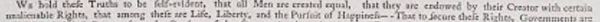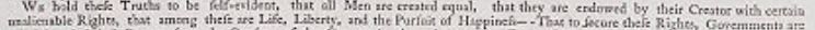 “We hold these truths to be self-evident, that all men are created equal, that they are endowed by their Creator with certain unalienable Rights, that among these are Life, Liberty and the pursuit of Happiness.”
