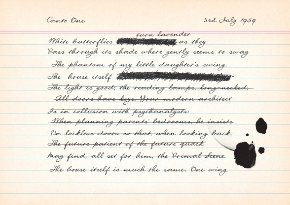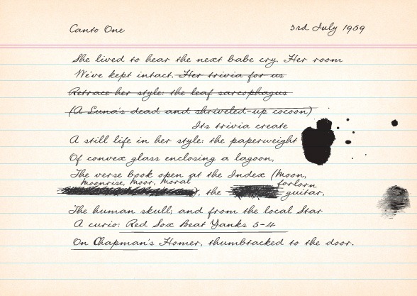 I can’t help but laugh when I read these, especially in the earnest “original facsimile” style, clearly parodying books like T. S. Eliot facsimile The Waste Land: A Facsimile and Transcript of the Original Drafts Including the Annotations of Ezra Pound. And, of course, the text itself is hilarious; note, for example, the third notecard which describes the room of the deceased Aunt Maude: