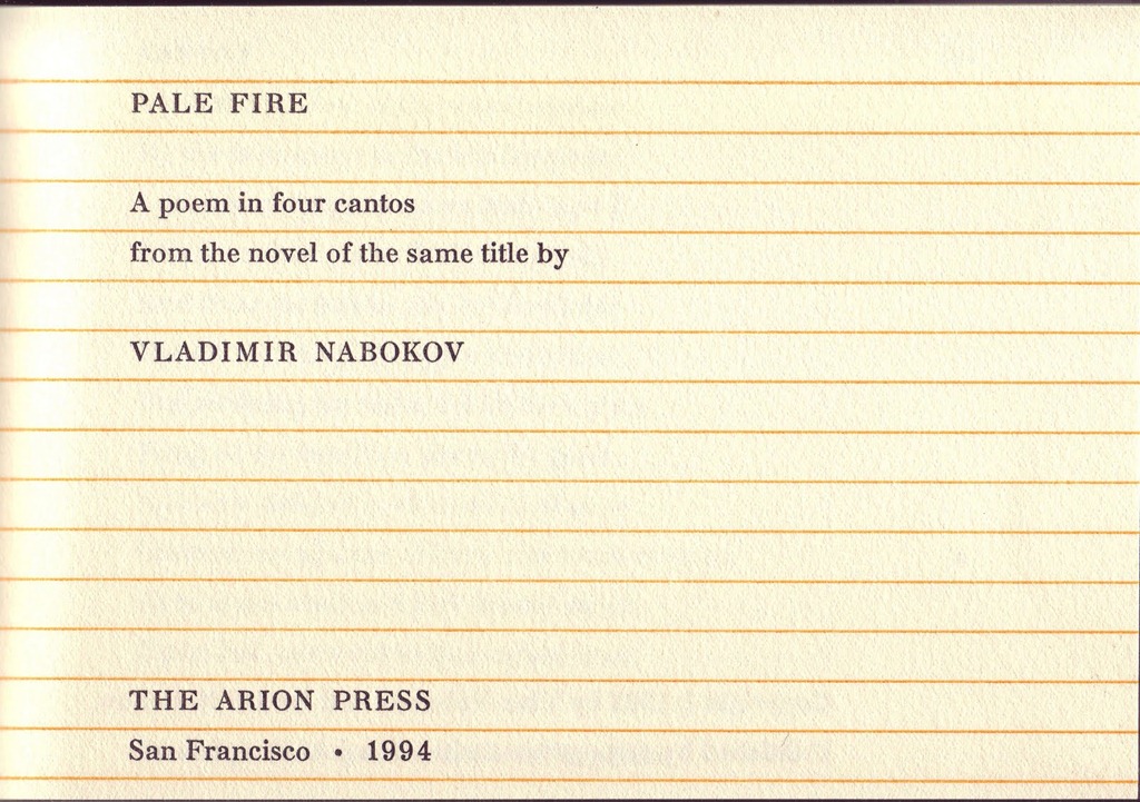 You can buy the Gingko Press version of “Pale Fire” at Amazon for about $25. Or, if you prefer the Arion Press edition, you can pick it up used for about $4000 (item #5 on this list). Or you can just read the poem online for free.