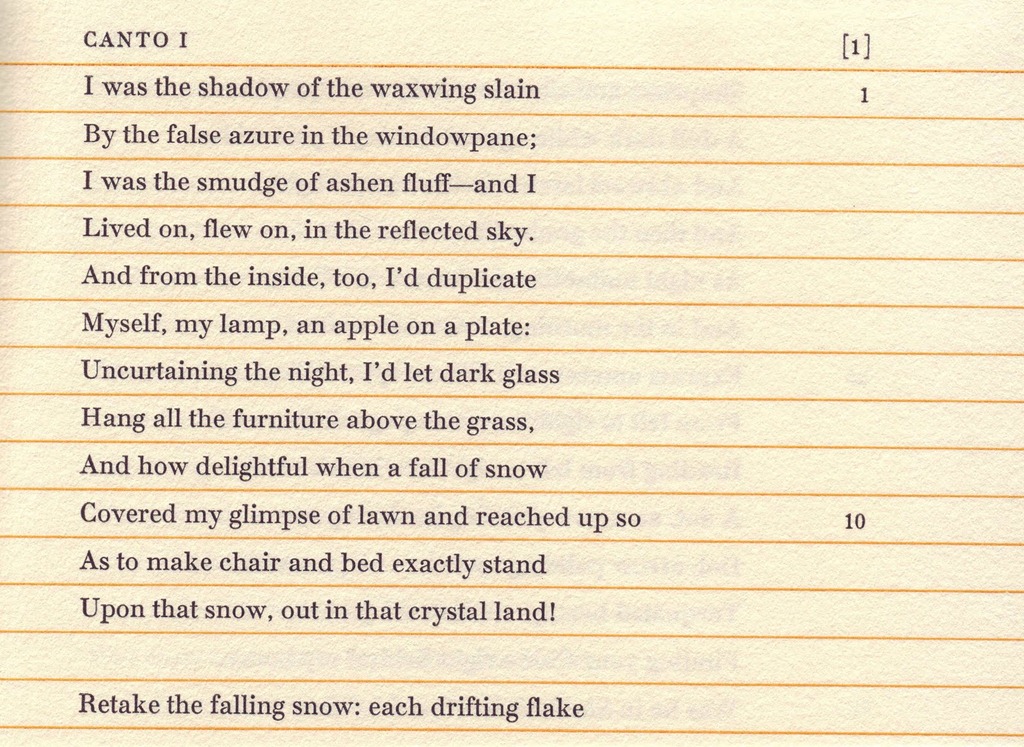 Pale Fire is arguably Vladimir Nabokov’s funniest novel – written in the form of an extended commentary by a madman “Charles Kinbote” on a poem written by poet “John Shade.” The novel includes the 999 line poem “Pale Fire” which forms the target of the Kinbote’s out-of-control commentary.