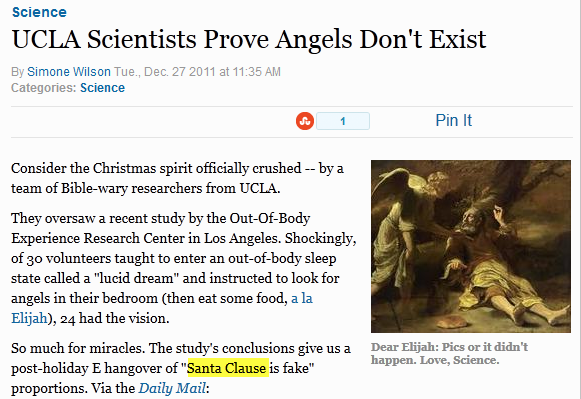 But the story gets better in the retelling. For example, the dubious publication LA Weekly, when it printed up its report, found fit to refer to “Santa Clause.”