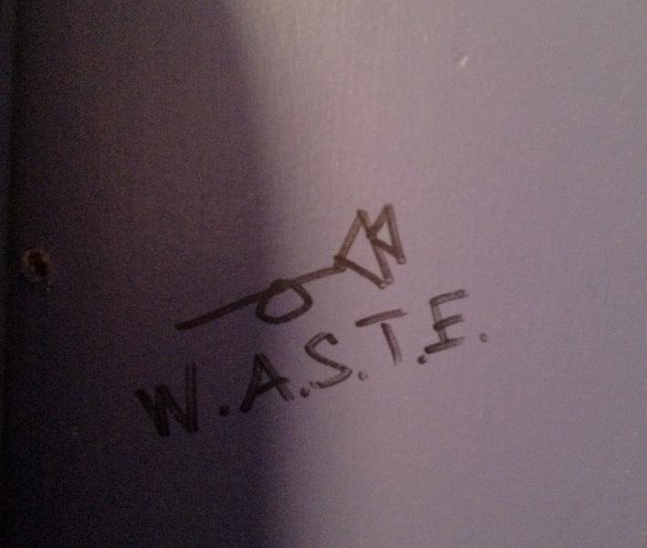 It seems everything I know about New York newspapers is wrong. The online website of the New York Daily News is reporting on a Thomas Pynchon – Crying of Lot 49 graffito in a Brooklyn bathroom: