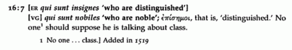 One final detail is the annotation which accompanied Erasmus text and Latin translation.