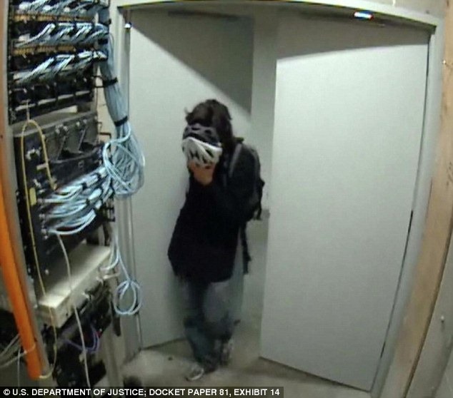 Investigators were on to Swartz at this point, however. They installed a video camera in the closet to catch Swartz when he accessed the closet to swap out storage devices or retrieve his computer. Swartz was caught on camera, and he even seems to have realized that he was being filmed; at one point he was filmed entering the closet using his bicycle helmet as a mask to avoid being identified. (Here’s the picture.) Swartz was spotted on MIT’s campus soon after by the police and tried to run away, but he was then caught and arrested. Federal charges followed.