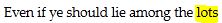 Thank you for doing so well with your Hebrew for us! Your best is really good. I wonder how your Latin is. Something in your comment got me looking at both the Vulgate (si dormieritis inter medios termionos) and also the Pagnini (si dormieritis inter trípodes), but I confess I don’t know what these mean. I do like your English “picture”!