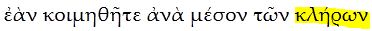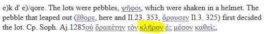 So, on the LXX. That’s the real concern of this post. And so thank you for stating very clearly “The LXX is not reading some alternative Hebrew.” I do appreciate your looks at where else in the LXX – and how else – κληρος is uses, probably more often as “κληρος/allotment” and perhaps, then, with another gesture back to “Judges 5.16 [which] could be nicely understood as referring to allotments.” I can easily see how I’ve not (yet) made much of a case for the paradigm of Sophocles (which is, I’ll just say now with no evidence, in the Homeric paradigm); maybe I’ll have time later to develop that. But I don’t think it’s easy to tie all of the references in LXX together nicely, and a great temptation can be to see how later readers (i.e., the NT writers) might understand κληρος. At any rate, I’m out of time for now, and would you say more when you have time?