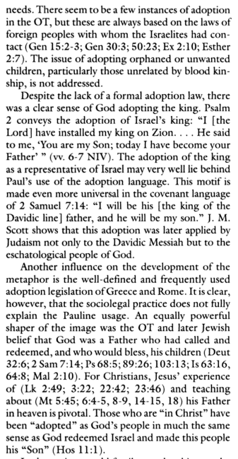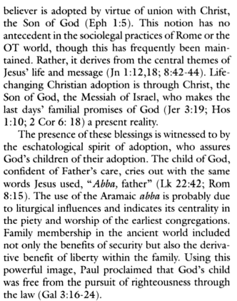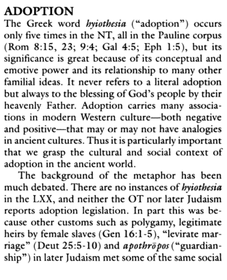 This is from the Dictionary of Biblical Imagery edited by Leland Ryken, James C. Wilhoit and Tremper Longman III, 1998. Even though Leland Ryken is the original literary stylist of the ESV, there is not one mention of “sons” in the following discussion of adoption of children. It all sounds so open and non-genderized. This is published by IVP. I thought that perhaps they had a stated policy on non-sexist language, but if they do, they don’t advertise it. At least, I haven’t found it so far. So this selection uses only inclusive language. It’s great! Sometimes my kids buy books and I like to know what is safe reading for them.