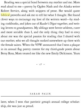 Michael, Isn’t is just fascinating what Sarah Palin writes about reading and what she says and writes about her reading and about how she reads the Bible?
