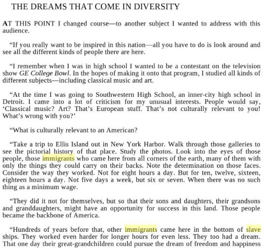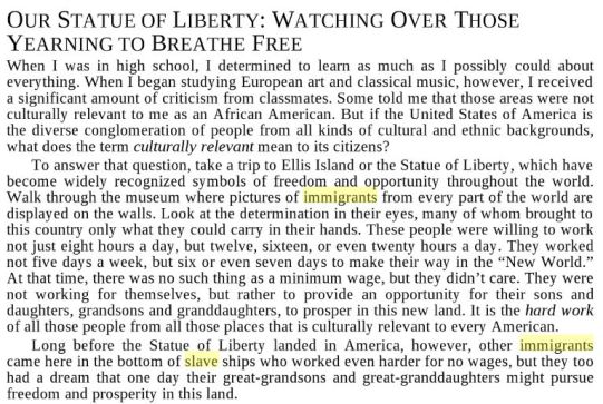 There were other immigrants who came in the bottom of slave ships, who worked even longer, even harder, for less, but they too had a dream that one day their sons, daughters, grandsons, granddaughters, great grandsons, great granddaughters might pursue prosperity and happiness in this land.