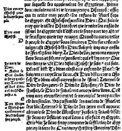 Below is an image of Ex. 3, from the Olivetan Bible. I would love a searchable text, but no luck. I can kind of get the hang of it now, for most of it, but the first time I tried to read this was no joke. I still can’t make out the last margin note.
