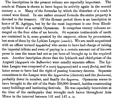 in a review of Petersen and Von Luschan. Reisen in Lykien, Milyas und Kibyratis. 1889. This is from the review.